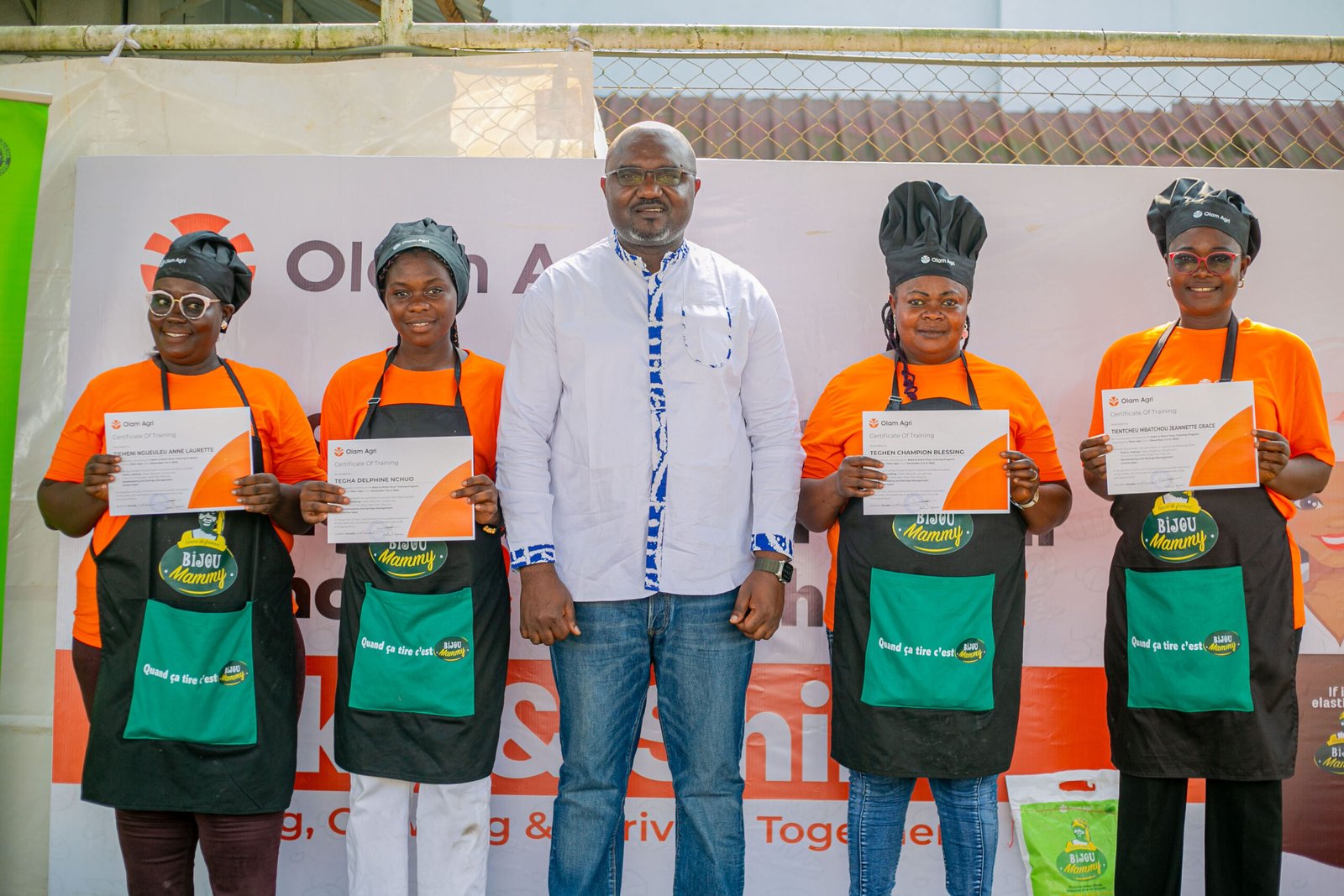 En plus du développement de leurs compétences, les participantes ont bénéficié d’examens médicaux gratuits pour dépister des maladies cardiovasculaires telles que l’hypertension et le diabète, réalisés par la clinique médicale de la Fondation Bondeko. Elles ont également visité le moulin à blé d’Olam Agri, ce qui leur a permis de mieux comprendre le processus de production de la farine qu’elles utiliseront dans leurs propres commerces. À la fin du programme, 50 femmes ont reçu des kits de démarrage contenant des équipements essentiels, notamment des mixeurs, des bassines à farine, des casseroles et des ustensiles de cuisine, afin de les aider à lancer ou à développer leur entreprise. Chaque participante a également reçu un certificat de fin de formation.