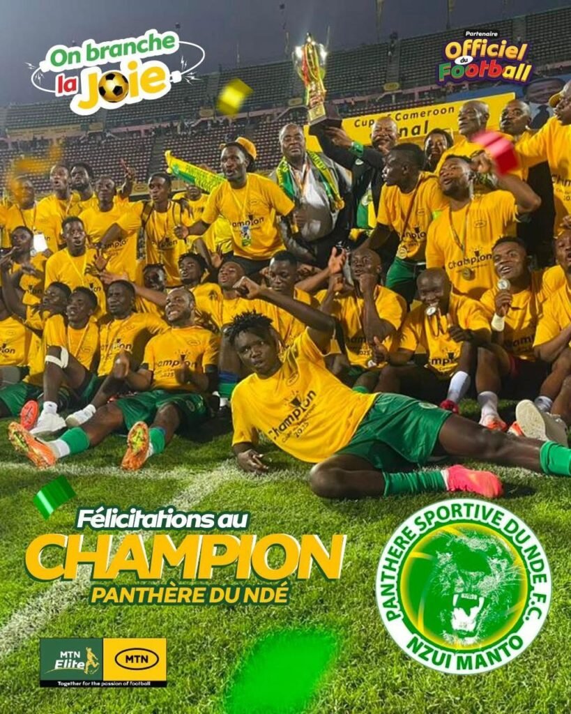 Le 14 décembre 2025, le Stade Omnisports Ahmadou Ahidjo de Yaoundé a accueilli une affiche attendue : Panthère Sportive du Ndé face à Colombe Sportive du Dja et Lobo. Au terme du temps réglementaire, les deux équipes se neutralisent (1–1). Mais c’est finalement Panthère du Ndé qui impose sa loi dans l’exercice ultime, s’offrant la Coupe sur un 3–1 aux tirs au but  et brisant au passage le rêve de doublé championnat – Coupe de Colombe.